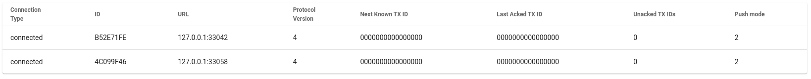 <figure><img src="https://2882845212-files.gitbook.io/~/files/v0/b/gitbook-x-prod.appspot.com/o/spaces%2F-MG8Rp3u8P9P7cUT3_pP%2Fuploads%2Fgit-blob-0e5d0f4449067d2ea30ae0db7be1335be2753573%2Fimage.png?alt=media" alt=""><figcaption><p>Connected peers table</p></figcaption></figure>